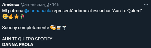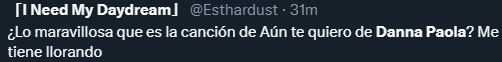 «¿Lo maravillosa que es la canción de Aún te quiero de Danna Paola? Me tiene llorando»