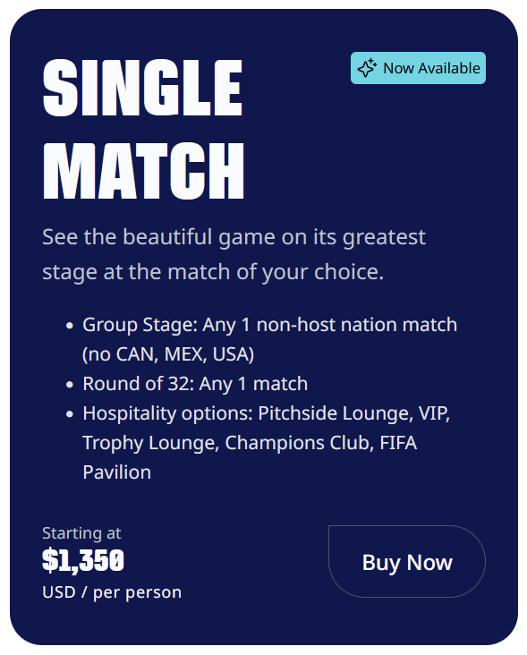 Si no logras adquirir boletos en las fases iniciales, la FIFA ofrece una plataforma oficial de reventa donde los compradores originales pueden devolver sus entradas. Si estas se revenden, el comprador original recupera parte del costo. Esta opción estará disponible incluso el mismo día de los partidos, como ocurrió en Qatar 2022. - Modalidad Hospitality (Paquetes Premium):
