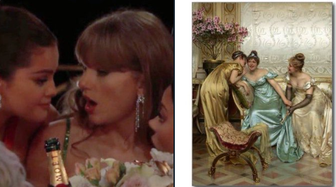 Selena Gomez secreteándose con Taylor Swift