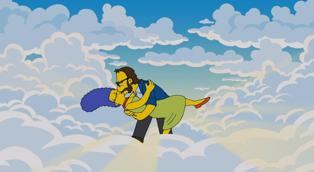 En este escenario, Lisa y Bart Simpson son adultos, y se insinuó que Marge había fallecido, observando los eventos desde el cielo mientras mantenía un romance ficticio con el baterista de The Beatles, Ringo Starr.