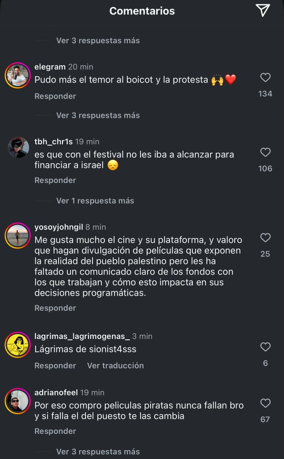 Algunos usuarios están expresando su descontento y boicot a MUBI debido a la conexión de Sequoia con la industria tecnológica-militar israelí y la situación en Palestina.