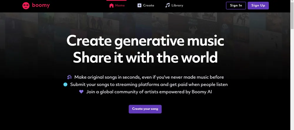 Boomy (https://boomy.com/) crea melodías a partir de respuestas proporcionadas por el usuario. La plataforma sólo necesita el género musical deseado para luego mostrar diferentes ritmos que se ajusten a la idea original. Con la base de la melodía lista, puedes agregar tus propias voces a la canción, adaptar sonidos de otros instrumentos y realizar ediciones al ritmo. Por otro lado, Boomy posee los derechos de autor de las producciones realizadas en la plataforma y no permite a los usuarios descargar música de forma gratuita.